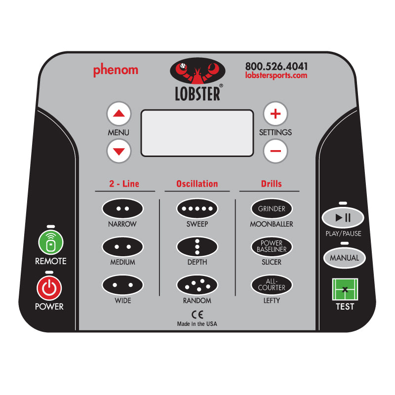 Diese Lobster-Tennisballmaschine bietet zudem eine völlig zufällige Ballverteilung. Mithilfe dieser revolutionären Funktion kann die Maschine Bälle über das gesamte Spektrum des Platzes werfen und dabei Geschwindigkeit, Spin, Flugbahn, Verteilung und Vorschubgeschwindigkeit variieren. Dank dieser Technologie kann der Phenom ein echtes Matchplay simulieren – eine Funktion, die von keiner anderen elektrischen Tennisballmaschine in ihrer Klasse übertroffen wird.